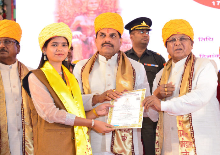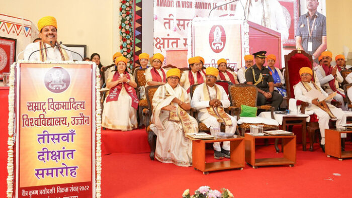 उज्जैनः राज्यपाल मंगुभाई पटेल की अध्यक्षता और मुख्यमंत्री डॉ. मोहन यादव के मुख्य आतिथ्य में सम्राट विक्रमादित्य विश्वविद्यालय का 30वां दीक्षांत समारोह स्वर्ण जयंती सभागृह सम्पन्न हुआ। कुलाधिपति एवं राज्यपाल श्री पटेल ने इस अवसर पर कहा कि आज विक्रम विश्वविद्यालय के तीसवें दीक्षांत समारोह में सम्मिलित होकर अत्यधिक आनन्द का अनुभव हो रहा है। इस दीक्षान्त समारोह में अपनी उपाधियां प्राप्त करने वाले सभी छात्र-छात्राओं को उन्होंने बधाई देते हुए सभी के यशस्वी एवं मंगलमय भविष्य की कामना की।