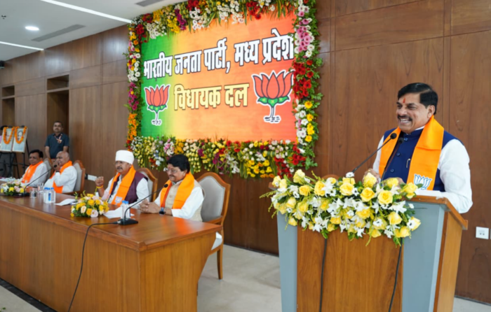 भोपालः मुख्यमंत्री डॉ. मोहन यादव ने मुख्यमंत्री निवास स्थित समत्व भवन में भाजपा विधायक दल की बैठक को संबोधित किया। इस दौरान वारिष्ठ विधायक व भाजपा प्रदेशध्यक्ष हेमंत खंडेलवाल, उपमुख्यमंत्री जगदीश देवड़ा एवं विधायक दल के महामंत्री शैलेन्द्र जैन मंचासीन रहे।