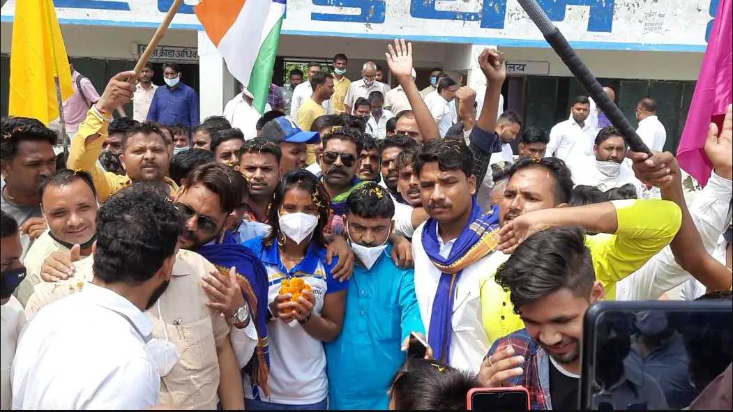 आपको बता दें कि टोक्यो ओलंपिक 2020 में दक्षिण अफ्रीका के खिलाफ हैट्रिक लगाने वाली पहली भारतीय महिला हॉकी खिलाड़ी वंदना कटारिया बुधवार को हरिद्वार पहुंची हैं। उनके हरिद्वार पहुंचने पर जगह-जगह भव्य स्वागत किया गया।