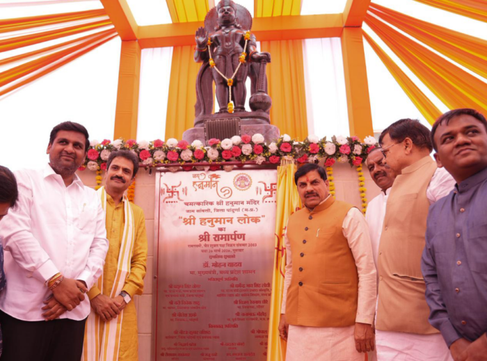 मंचासिन अतिथियों ने मुख्यमंत्री डॉ. मोहन यादव को अंगवस्त्र एवं पौधा भेंटकर उनका अभिनंदन किया। मुख्यमंत्री डॉ. मोहन यादव ने रिमोट का बटन दबाकर जामसांवली के श्री हनुमान लोक का किया रामार्पण।