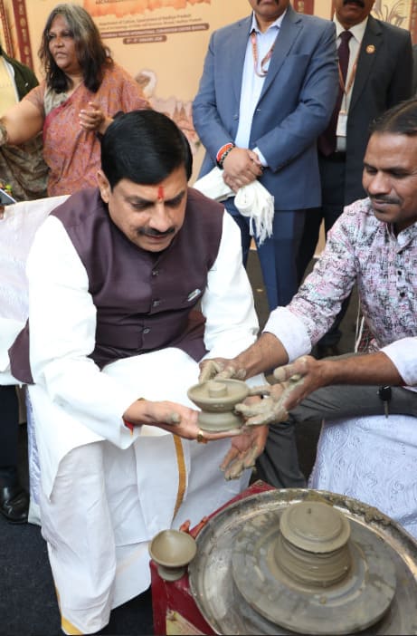 मुख्यमंत्री डॉ. मोहन यादव ने रिबन काटकर प्रदर्शनी का शुभारंभ किया और प्रदर्शनी में प्रदर्शित कलाकृतियों का अवलोकन किया। इस दौरान उन्होंने कुम्हार के चाक पर स्वयं मिट्टी का दीया और शिवलिंग की प्रतिकृति बनाकर भारतीय संस्कृति, कला एवं शिल्प परंपराओं के प्रति अपनी आस्था और सम्मान व्यक्त किया।