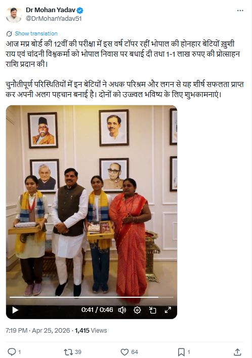 अपने सोशल हैंडल एक्स पर वीडियो शेयर करते हुए उन्होंने कहा कि चुनौतीपूर्ण परिस्थितियों में इन बेटियों ने अथक परिश्रम और लगन से यह शीर्ष सफलता प्राप्त कर अपनी अलग पहचान बनाई है। दोनों को उज्ज्वल भविष्य के लिए शुभकामनाएं।