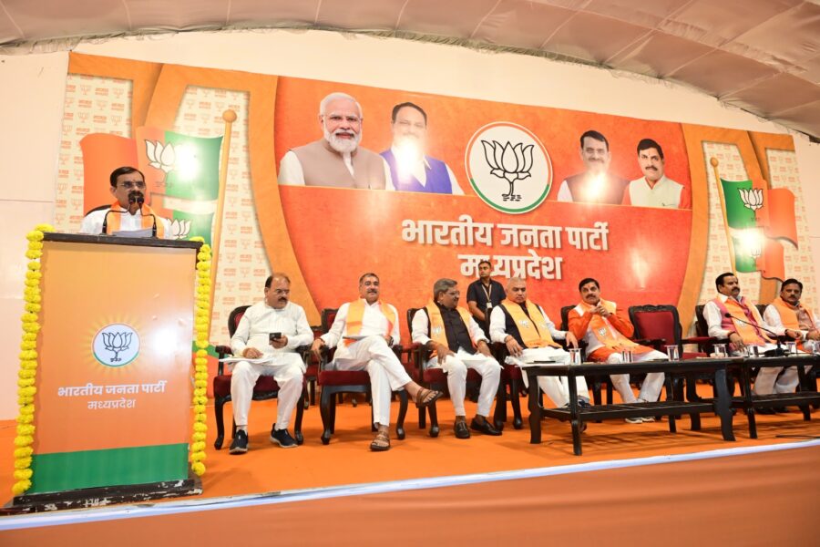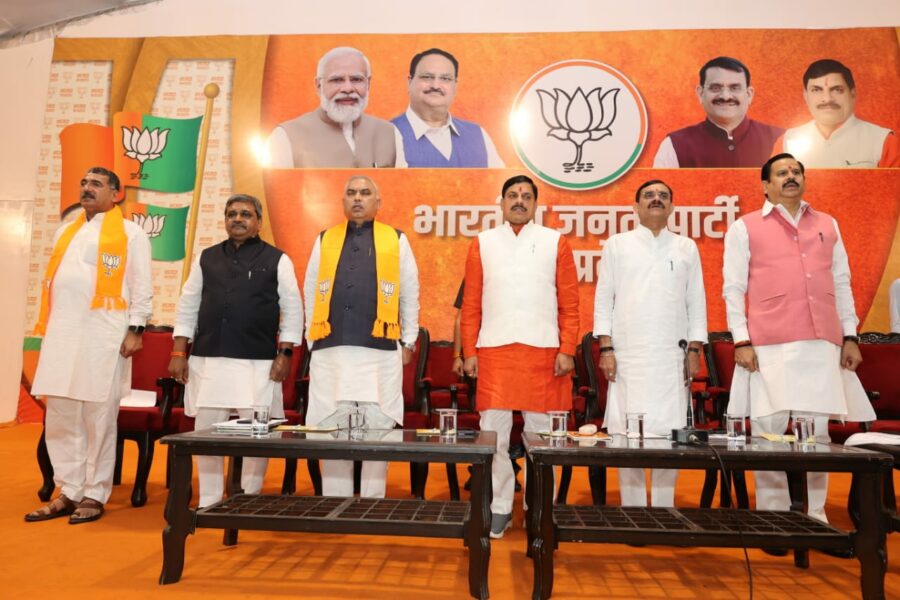 भोपालः मध्य प्रदेश के मुख्यमंत्री डॉ. मोहन यादव ने भारतीय जनता पार्टी प्रदेश कार्यसमिति की बैठक का शुभारंभ किया। इस मौके पर भारतीय जनता पार्टी के राष्ट्रीय सह संगठन महामंत्री शिवप्रकाश, मुख्यमंत्री डॉ. मोहन यादव, प्रदेश अध्यक्ष व खजुराहो सांसद विष्णुदत्त शर्मा, प्रदेश प्रभारी डॉ महेन्द्र सिंह, प्रदेश सह प्रभारी, सतीश उपाध्याय, प्रदेश संगठन महामंत्री हितानंद जी, मध्यप्रदेश शासन के उप मुख्मयंत्री जगदीश देवड़ा एवं राजेन्द्र शुक्ल ने मंगलवार को पार्टी प्रदेश कार्यालय में आयोजित आवश्यक बैठक का दीप प्रज्जवलित कर शुभारंभ किया।