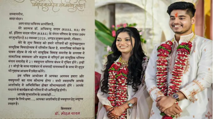दूल्हा अभिमन्यु यादव और दुल्हन डॉ. इशिता यादव पटेल दोनों ही डॉक्टर हैं — उनकी पृष्ठभूमि और पेशा समाज में उनकी मजबूती दिखाता है। इस शादी का कार्ड भी बहुत साधारण रखा गया है; कार्ड में छपे संदेश में उन्होंने स्पष्ट किया है कि यह ‘सादगी, सामाजिक समरसता और सद्भाव’ की मिसाल है। इस समारोह में उपहार की अपेक्षा नहीं है — “आपका आशीर्वाद ही नवयुगल के लिए अमूल्य उपहार है।”