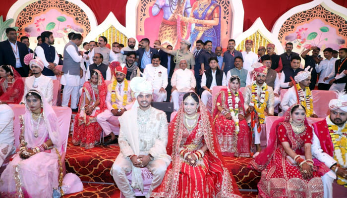 राज्यपाल मंगुभाई पटेल और मुख्यमंत्री डॉ. मोहन यादव ने नवविवाहित जोड़ों को आशीर्वाद देते हुए उनके सुखमय दांपत्य जीवन की कामना की। कार्यक्रम के दौरान वरिष्ठ जनप्रतिनिधियों, सामाजिक संगठनों और स्थानीय नागरिकों की बड़ी संख्या में उपस्थिति रही।