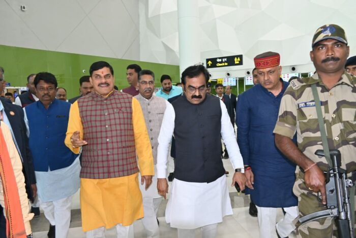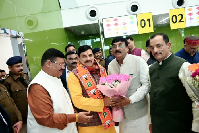 डुमना विमानतल पर मुख्यमंत्री डॉ. यादव का स्वागत लोक निर्माण मंत्री राकेश सिंह, सांसद आशीष दुबे, महापौर जगत बहादुर सिंह अन्नु, विधायक अशोक रोहाणी एवं सुशील तिवारी इंदु द्वारा किया गया।