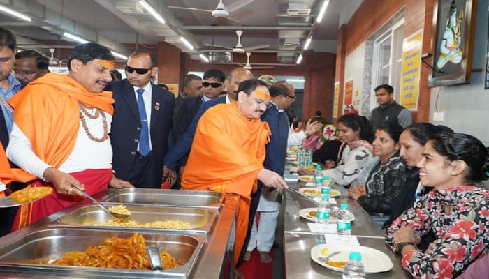 पूजन-अर्चन के उपरांत मुख्यमंत्री और केंद्रीय मंत्री, मध्य प्रदेश के प्रभारी मंत्री महेंद्र सिंह के साथ महाकाल मंदिर के अन्न क्षेत्र पहुंचे। यहां उन्होंने श्रद्धालुओं को प्रसादी वितरित की और स्वयं भी प्रसादी ग्रहण की। पोहे की प्रसादी लेने के बाद जेपी नड्डा और मुख्यमंत्री डॉ. मोहन यादव ने खुद ही अपनी थाली उठाकर निर्धारित स्थान पर रखी, जिससे सेवा और समता का संदेश दिया।