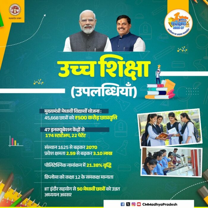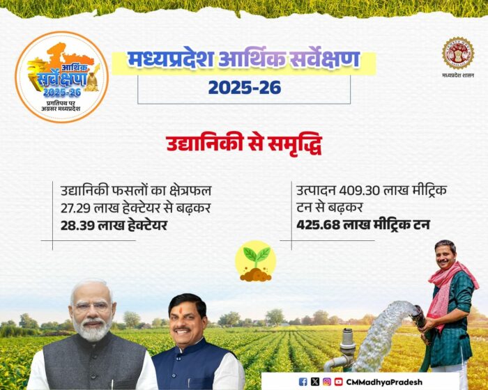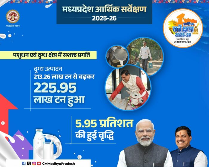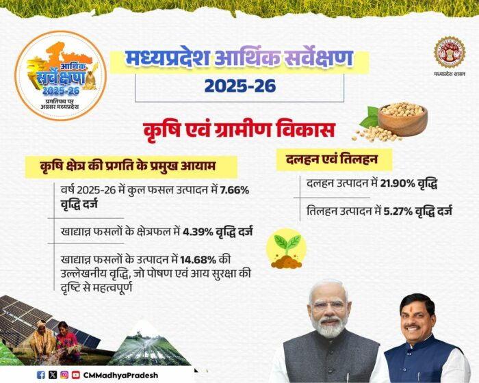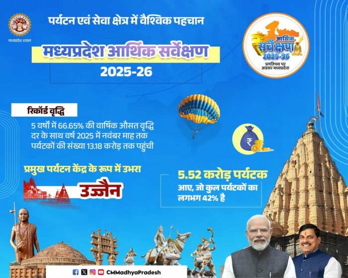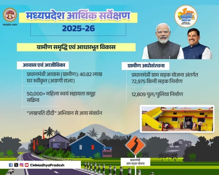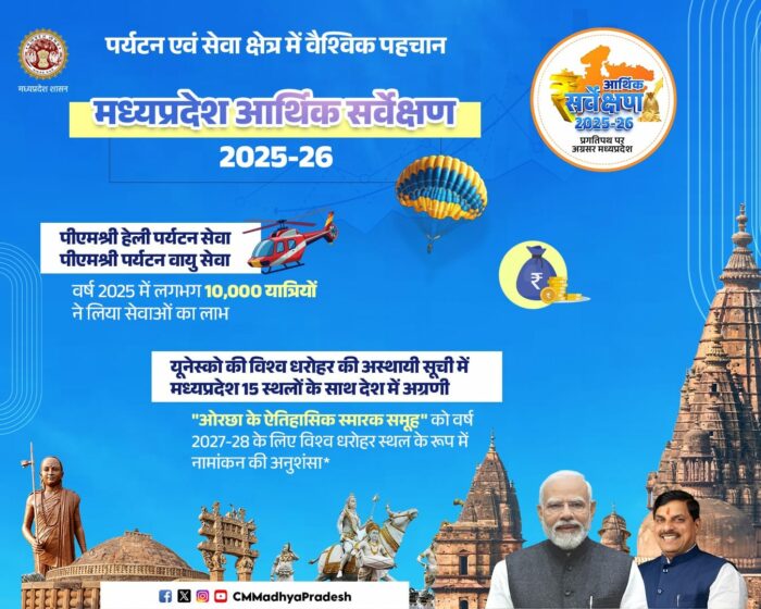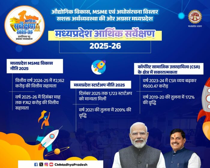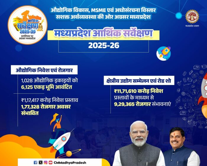 मुख्यमंत्री डॉ. मोहन यादव ने कहा कि प्रधानमंत्री नरेन्द्र मोदी के कुशल नेतृत्व में मध्यप्रदेश की अर्थव्यवस्था समावेशी विकास के साथ अत्यंत गतिशील अर्थव्यवस्था बन गई है। वित्तीय अनुशासन, पारदर्शी प्रशासन और दूरदर्शी नीतियों के साथ मध्यप्रदेश की आर्थिक स्थिति सुदृढ़ हुई है। मध्यप्रदेश विधान सभा में मंगलवार को प्रस्तुत आर्थिक सर्वेक्षण 2025-26 के अनुसार राज्य की अर्थव्यवस्था योजनाबद्ध रूप से संतुलित और परिणामोन्मुखी है।