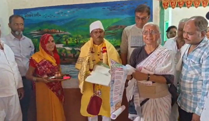 ज्ञात हो कि पवन केवट ऐसा नाविक है, जिसने 2019 में सरदार सरोवर की बड़ी डूब से ग्रस्त होते गए राजघाट के निवासी, उनका सामान, मवेशी बचाने में बड़ा योगदान दिया था। इसलिए पवन ने अपने मकान का नाम नर्मदाई रखा। इस दौरान मेधा पाटकर ने उपस्थितों के साथ कुदरत से खिलवाड़ किया तो कुदरत बदला लेगी गीत का गायन भी किया।