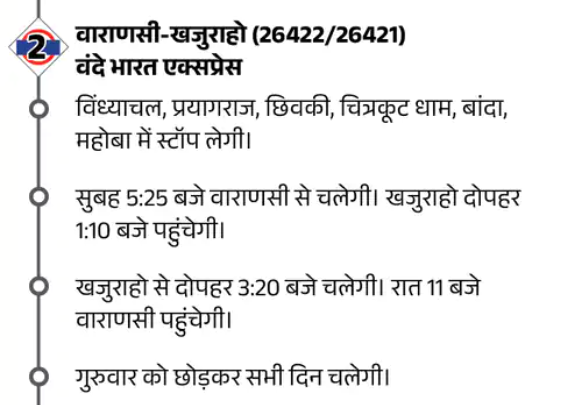 प्रधानमंत्री नरेंद्र मोदी ने शुक्रवार को काशी से चार वंदे भारत एक्सप्रेस ट्रेनों को हरी झंडी दिखाई, जिनमें वाराणसी-खजुराहो, फिरोजपुर-दिल्ली, एर्नाकुलम-बेंगलुरु और लखनऊ-सहारनपुर रूट शामिल हैं। इस अवसर पर प्रधानमंत्री ने कहा कि “वंदे भारत ट्रेन अब भारत की तकनीकी क्षमता और आत्मनिर्भरता का प्रतीक बन चुकी है। यह ट्रेन भारतीयों की, भारतीयों द्वारा और भारतीयों के लिए बनाई गई है।”