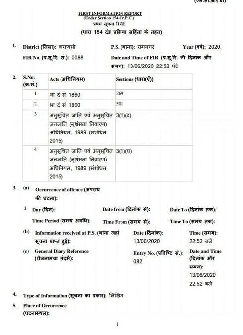 सुप्रिया के खिलाफ आईपीसी सेक्शन 269 (किसी बीमारी को फैलाने में की गई लापरवाही) और 501 (मानहानि) के अलावा SC/ST एक्ट, 1989 के सेक्शन 3 के तहत एफआईआर दर्ज हुई है।