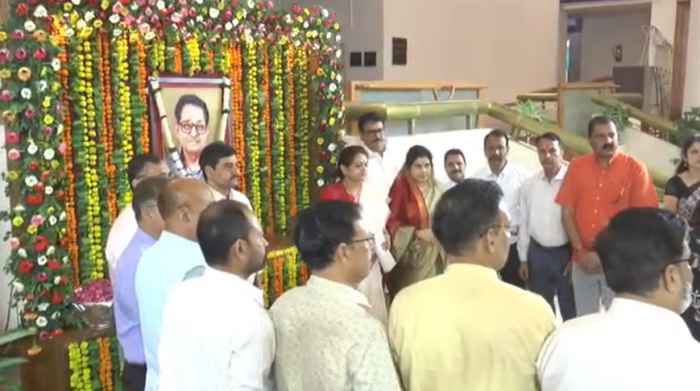 भोपालः मध्यप्रदेश विधानसभा के पूर्व अध्यक्ष रहे बृजमोहन मिश्रा की जयंती के अवसर पर विधानसभा परिसर में पुष्पांजलि कार्यक्रम का आयोजन किया गया। इस दौरान प्रदेश के कई जनप्रतिनिधियों ने उन्हें श्रद्धांजलि अर्पित कर उनके योगदान को याद किया।