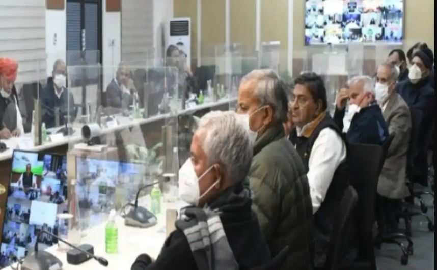 जयपुर: अशोक गहलोत (CM Ashok Gehlot) मंत्रिमंडल की बुधवार को हुई बैठक में तेजी से बढते कोरोना वायरस के संक्रमण पर चिंता व्यक्त की गई और संक्रमण की रोकथाम के लिए प्रभावी कदम उठाने पर चर्चा की गई. इस दौरान मंत्रिमंडल (Rajasthan Cabinet Meeting) ने विगत दिनों में संक्रमण की बढ़ती दर के चलते कोविड (Rajasthan Corona Update) अनुकूल व्यवहार का सख्ती से पालन कराने एवं विभिन्न गतिविधियों पर आंशिक पाबंदियां लगाए जाने के सुझाव दिए. बैठक में निर्णय लिया गया कि राज्य मंत्रिमंडल के सदस्य अपने-अपने प्रभार वाले जिलों में कोविड की स्थिति पर लगातार नजर रखेंगे और जनप्रतिनिधियों एवं अन्य माध्यमों से मिले फीडबैक के आधार पर कोरोना संक्रमण को नियंत्रित करने की दिशा में सकारात्मक प्रयास करेंगे.